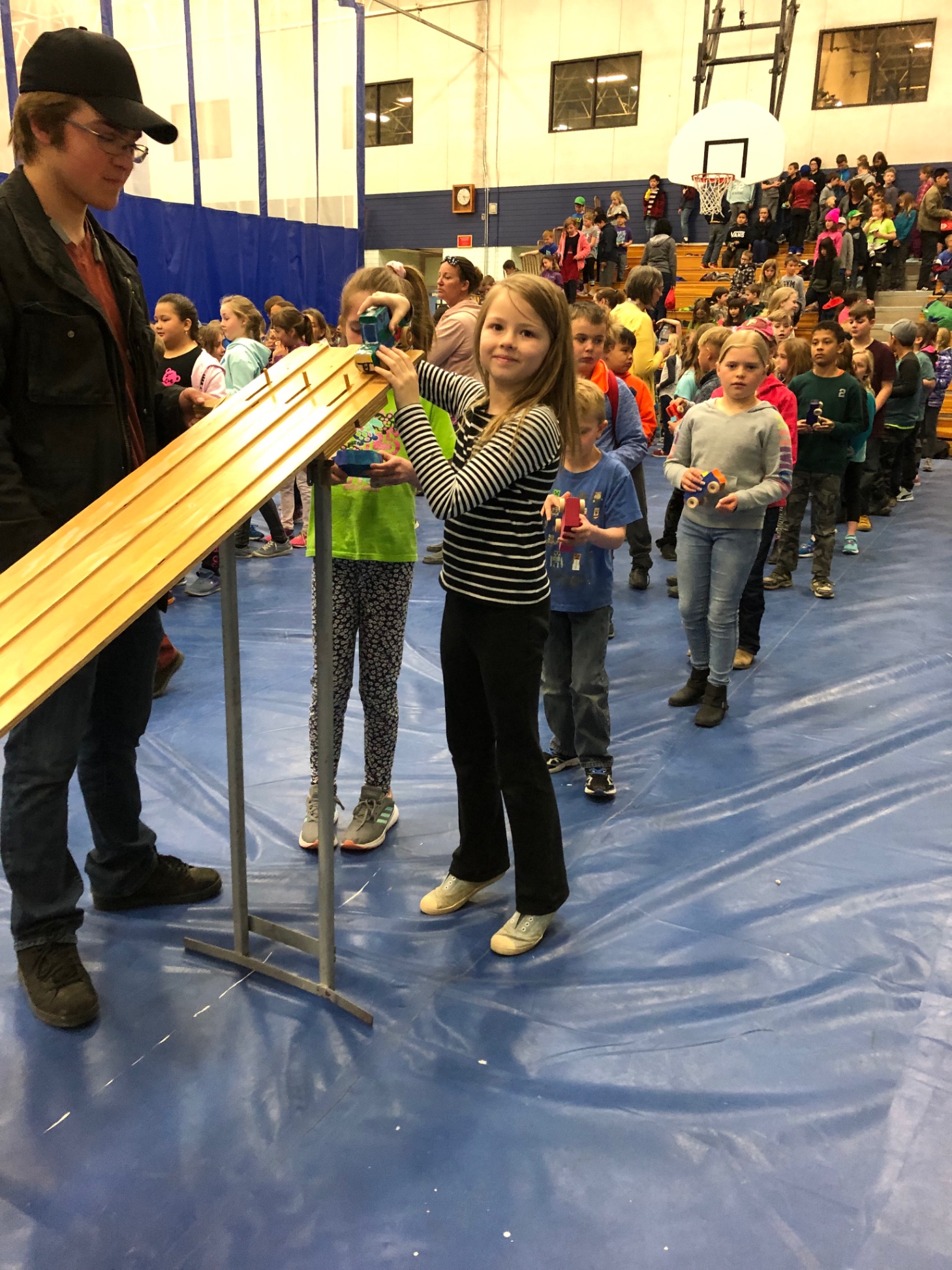 Carl's Car Initiative has elementary students design and build a small wooden car. The initiative culminates in a District-wide Carl’s Car Race Day, where students race their cars.